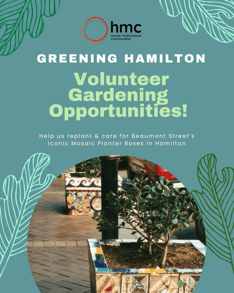 Greening Hamilton: Bringing Beaumont Street to Life Hunter Multicultural Communities (HMC) is excited to launch Greening Hamilton, a hands-on community project that will care for and replant the iconic mosaic planter boxes along Beaumont Street. Delivered in partnership with the Hamilton Business Improvement Association and supported through the Special Business Rate Program, the project will…